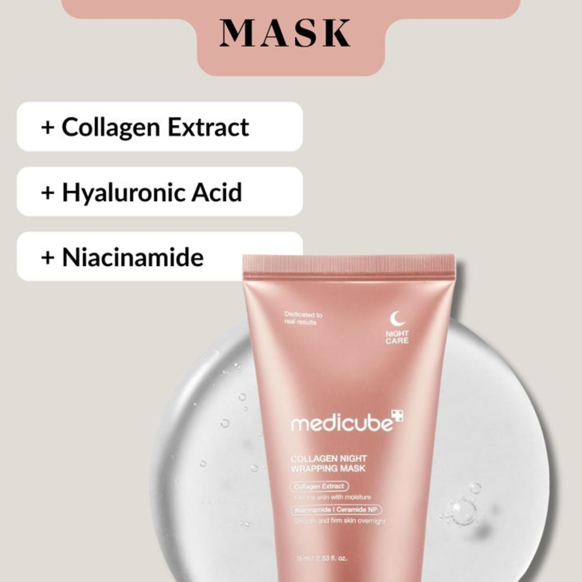 •ماسک شب کلاژن مدیکیوب حاوی هیالورونیک اسید و ترکیبات رطوبترسان قوی است که پوست را بهطور عمقی آبرسانی کرده و رطوبت را در آن قفل میکند.